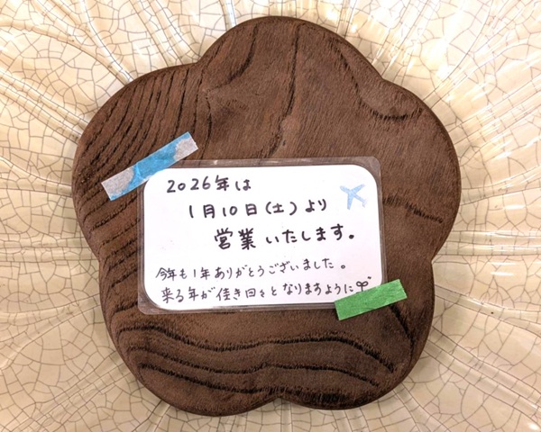 来週1月3日(土)は、年始のお休みをいただきます。
